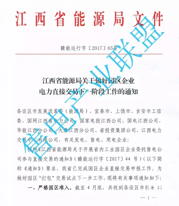 江西園區(qū)企業(yè)下階段電力直接交易工作的通知