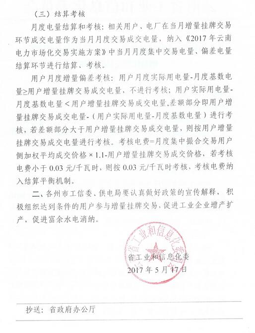 云南工信委關(guān)于2017年電力市場化增量掛牌交易的通知