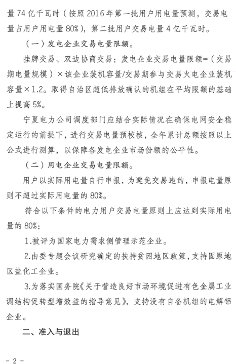 三季度掛牌交易掛牌方為自治區(qū)經(jīng)信委準(zhǔn)許的優(yōu)先保障企業(yè)(銀川隆基硅材料有限公司、寧夏隆基硅材料有限公司,中寧縣錦寧鋁鎂新材料有限公司),電量規(guī)模為13.445億千瓦時(shí)。摘牌方為符合準(zhǔn)入條件的區(qū)內(nèi)公用及自備電廠。參與交易的電力用戶在交易開(kāi)始前將電力交易委托書(shū)傳真至交易中心。