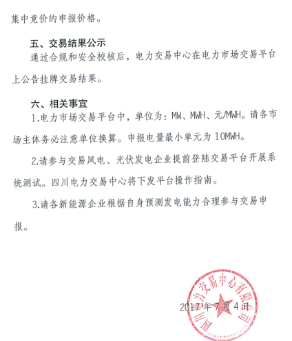 7月4日,四川電力交易中心發(fā)布《關(guān)于開(kāi)展2017 年6、7 月豐水期居民生活電能替代掛牌交易的公告》。將于7月6日上午9:00-11:30開(kāi)展6月份居民生活電能替代交易,下午14:00-16:30開(kāi)展7月份居民生活電能替代交易。公