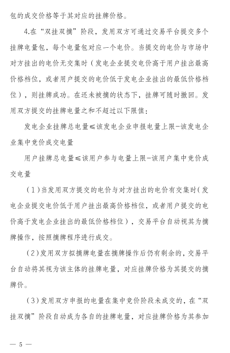 本次交易的電量需求,6月份302000兆瓦時(shí),7月份350000兆瓦時(shí),掛牌電價(jià)為204.07元/兆瓦時(shí)。交易方式為采用復(fù)式競(jìng)價(jià)撮合交易方式,劃分為“集中競(jìng)價(jià)、雙掛雙摘”兩個(gè)階段,其中前30分鐘為集中競(jìng)價(jià)階段,其余時(shí)段為雙掛雙摘階段。