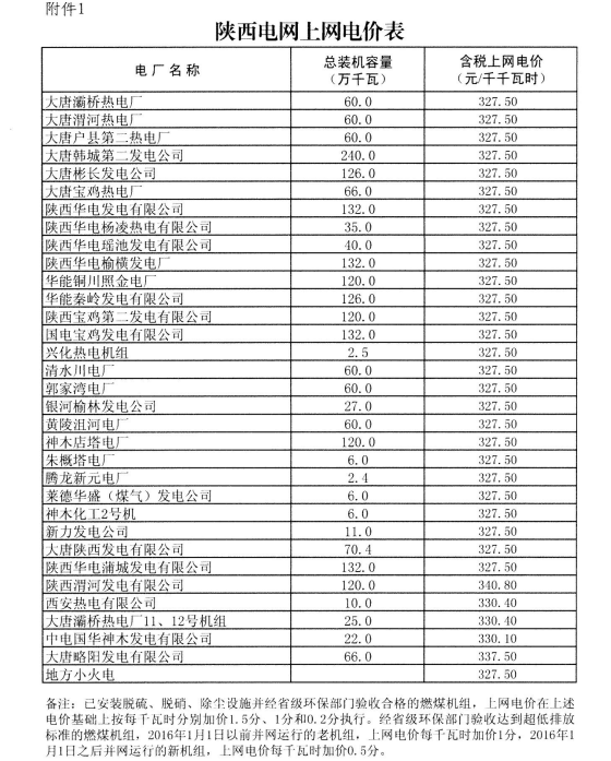 附件:1.陜西電網(wǎng)上網(wǎng)電價表