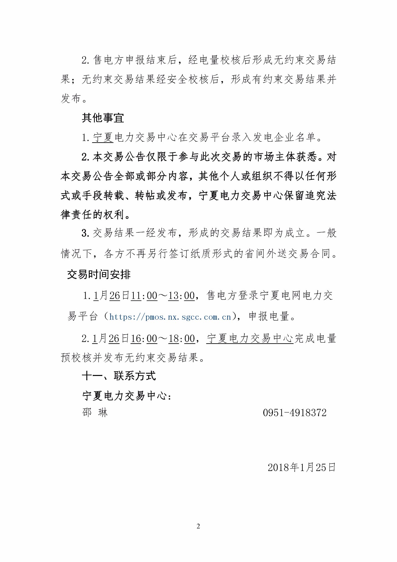 寧夏電力交易中心日前發(fā)布了《2017年2月送青海交易公告(火電)》的通知,通知中稱,將于2018年2月1日-28日舉行2018年2月寧夏送青海短期省間外送交易,交易電量1億千瓦時,詳情如下: