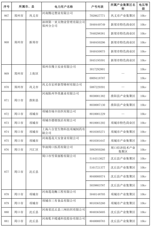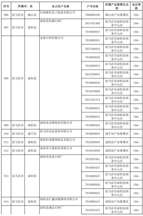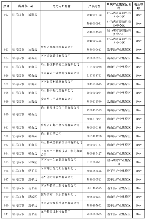 河南2018年第一批準(zhǔn)入( 具備交易資格)的982家電力用戶名單