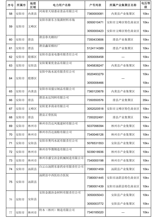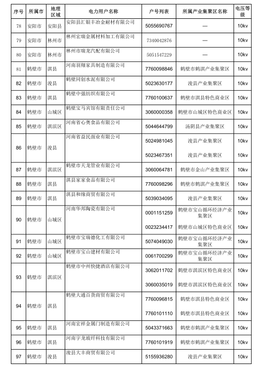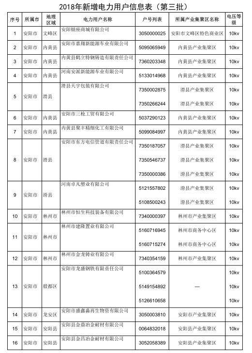 2018年河南省新增942家電力用戶公示名單(第三批)