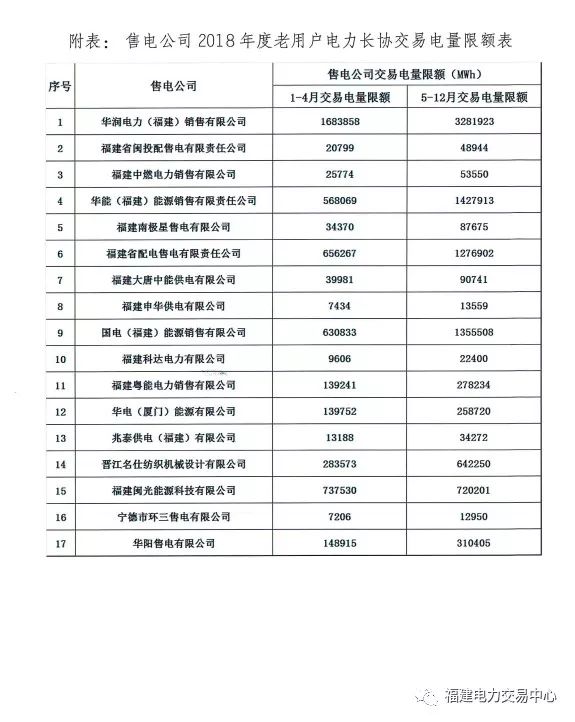 福建公布售電公司2018年度老用戶電力長(zhǎng)協(xié)交易電量限額
