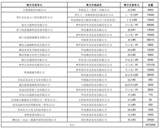 山東2018年4月雙邊協(xié)商交易:交易電量5072690兆瓦時(shí)