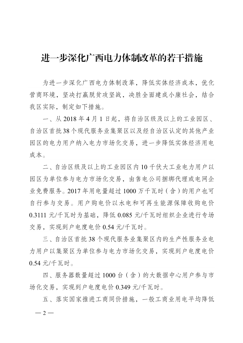 深化廣西電力體制改革若干措施通知發(fā)布:首批38個現(xiàn)代服務業(yè)集聚區(qū)納入電力交易 到戶電價0.54元