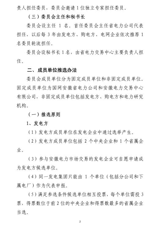 安徽省電力市場管理委員會日前發(fā)布了《關(guān)于開展電力市場管理委員會改選工作的通知》,改選成員單位:一級用戶1個,二級用戶1個。資料申報時