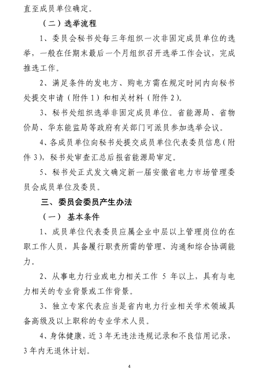 安徽省電力市場管理委員會日前發(fā)布了《關于開展電力市場管理委員會改選工作的通知》,改選成員單位:一級用戶1個,二級用戶1個。資料申報時