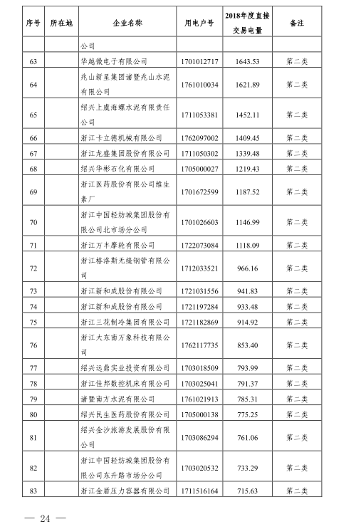 浙江公布2018年度電力直接交易試點電力用戶相關信息