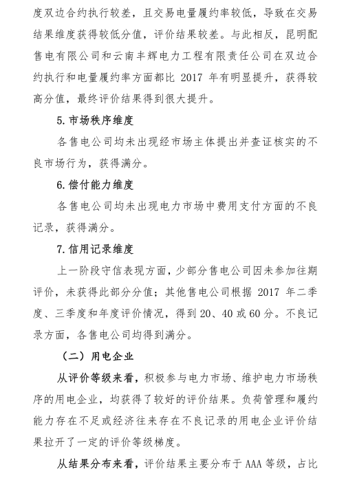 2018年一季度云南電力市場(chǎng)主體交易行為信用評(píng)價(jià)結(jié)果