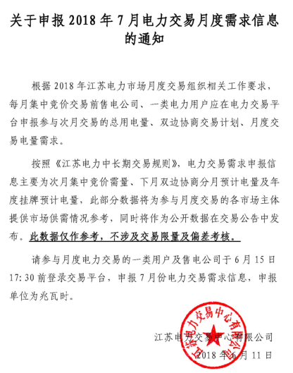 根據(jù)2018年江蘇電力市場月度交易組織相關(guān)工作要求,按照《江蘇電力中長期交易規(guī)則》,參與月度電力交易的一類用戶及售電公司與6月15日17::...