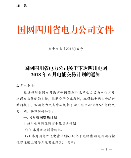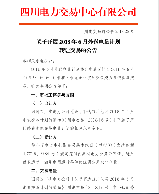 附件:關(guān)于開展2018年6月外送電量計(jì)劃轉(zhuǎn)讓交易的公告(川電交易司公告2018-25號(hào))