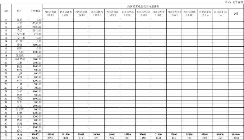 四川2018年6月外送電量計(jì)劃轉(zhuǎn)讓交易6月20日展開(附四川電網(wǎng)2018年6月電能交易計(jì)劃)