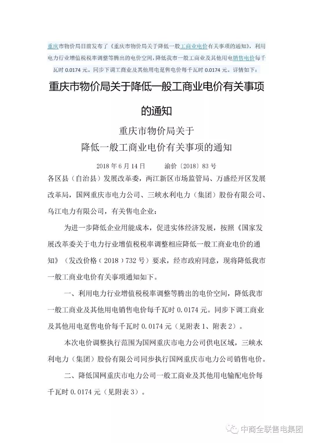 2018年6月14日,重慶市物價局發(fā)布了《關(guān)于降低一般工商業(yè)電價有關(guān)事項的通知》,確定了重慶市進(jìn)一步降低企業(yè)用能成本,調(diào)整電價結(jié)算的方式方法。