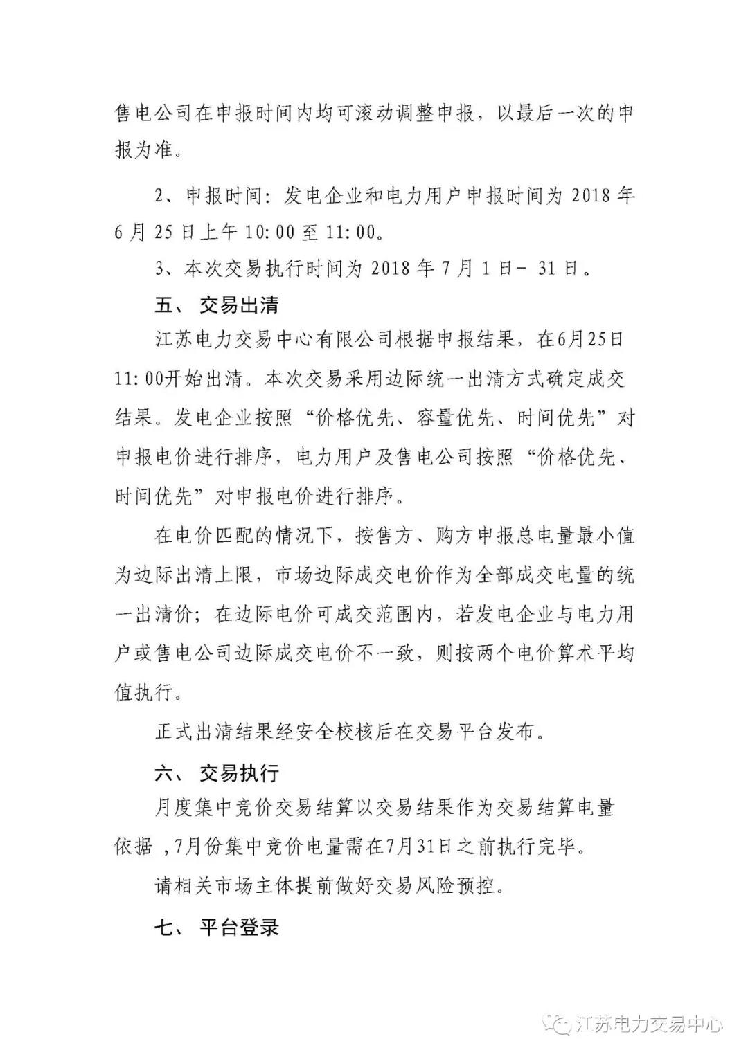 江蘇2018年7月份集中競(jìng)價(jià)交易公告