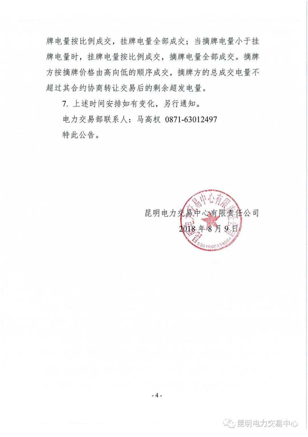 云南關于開展2018年1至6月電廠事后合約轉(zhuǎn)讓交易的公告