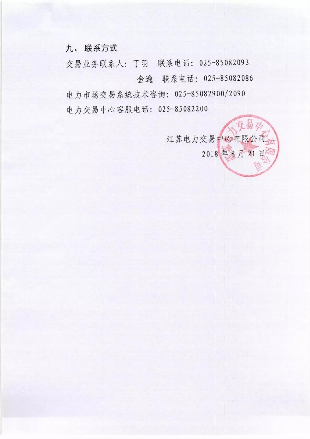 2018年8月份江蘇電力市場(chǎng)月內(nèi)交易公告