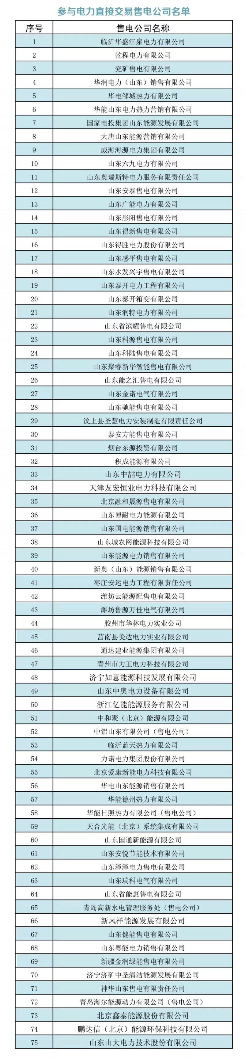 售電方:根據(jù)山東能源監(jiān)管辦下發(fā)的《關(guān)于公布2018年電力直接交易發(fā)電企業(yè)(機(jī)組)名單的通知》(魯監(jiān)能市場〔2017〕187號)文件確定的省內(nèi)直調(diào)發(fā)電企業(yè)(詳見下表)。
