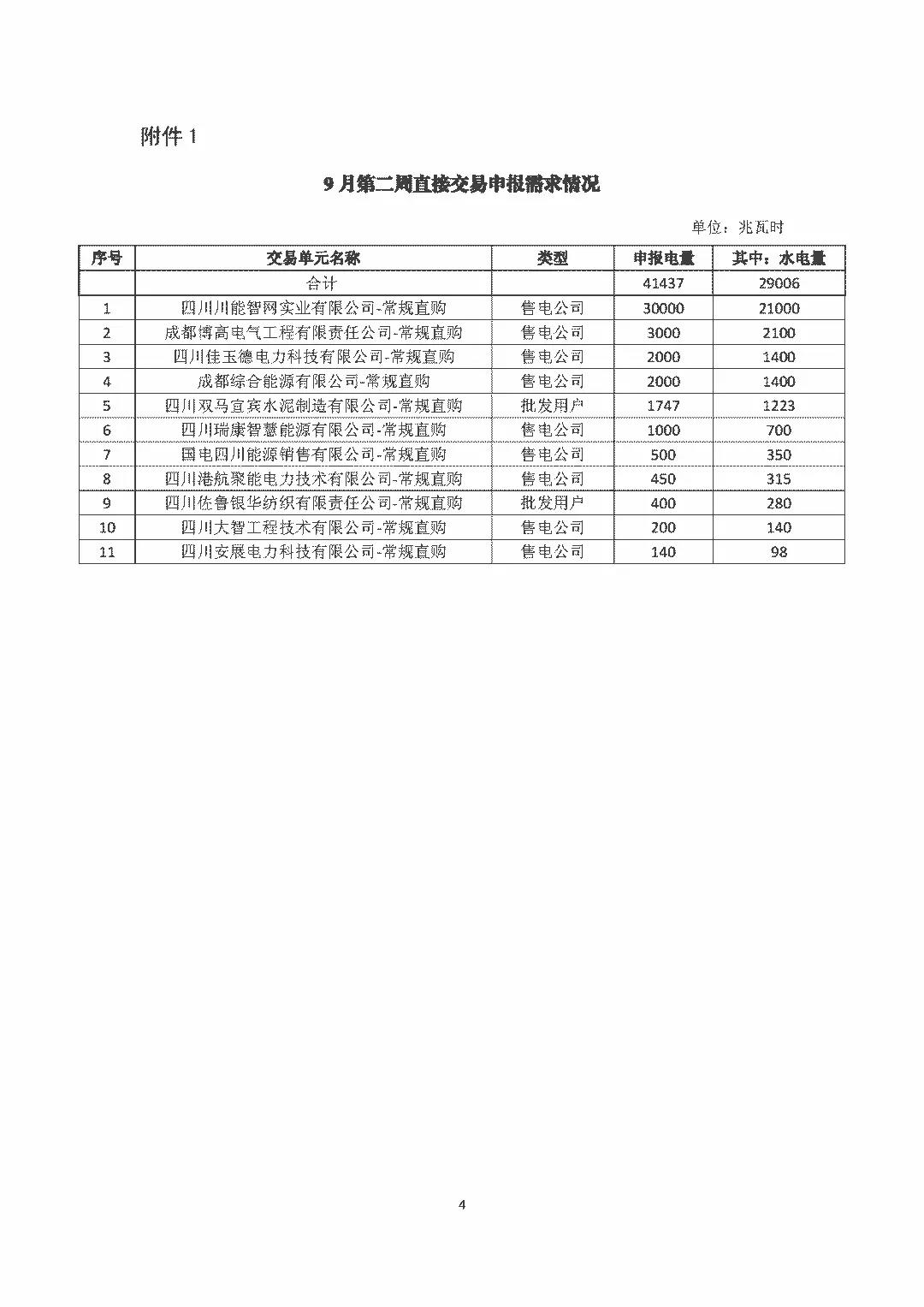 公告 | 四川關(guān)于開展2018年9月第二周直接交易的公告