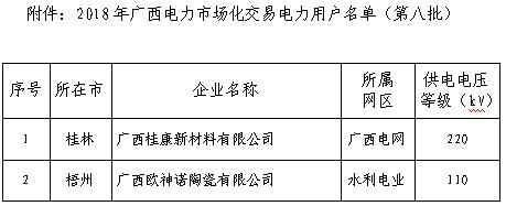 廣西公示擬列入2018年電力市場(chǎng)交易準(zhǔn)入名單(第八批)的2家電力用戶(hù)