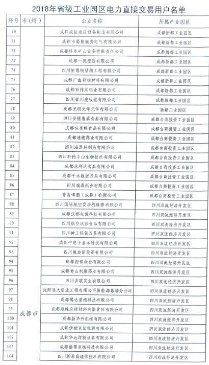 全名單|四川新增2018年省級及以上工業(yè)園區(qū)(開發(fā)區(qū))和4個重點(diǎn)行業(yè)電力直接交易用戶