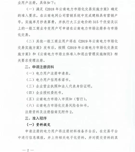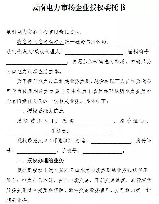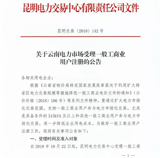 云南放開315千伏安及以上一般工商業(yè)用戶準(zhǔn)入!(附注冊(cè)資料及指南)