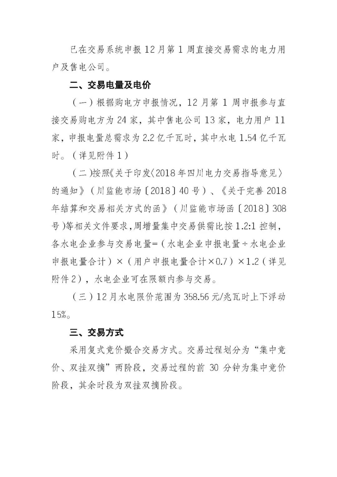 公告 | 四川關(guān)于開展2018年12月第1周直接交易的公告