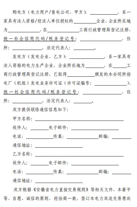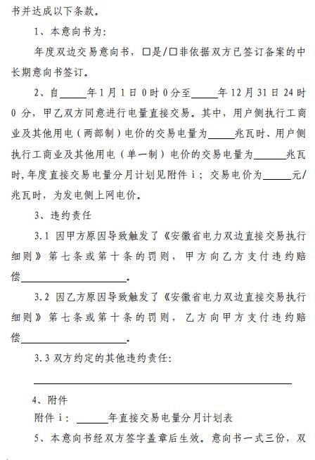 安徽省電力雙邊直接交易執(zhí)行細(xì)則
