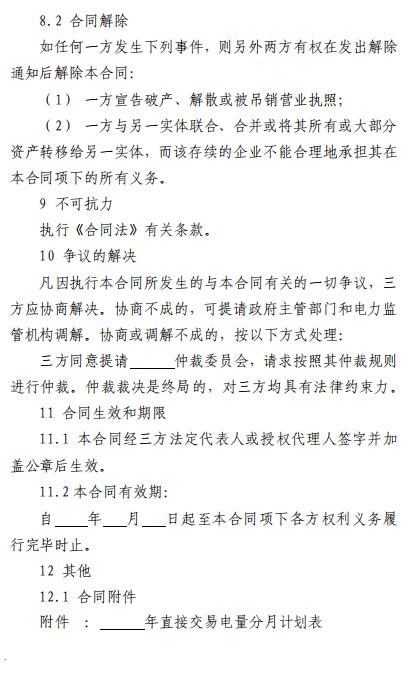 第十二條 直接交易合同包括:年度雙邊交易合同、年度集中交易合同、月度合同轉(zhuǎn)讓交易合同以及月度集中交易合同,直接交易合同采用月結(jié)月清的方式結(jié)算。