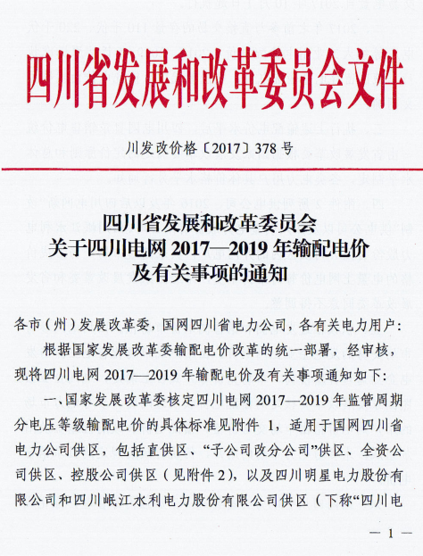四川電網(wǎng)2017—2019年輸配電價發(fā)布