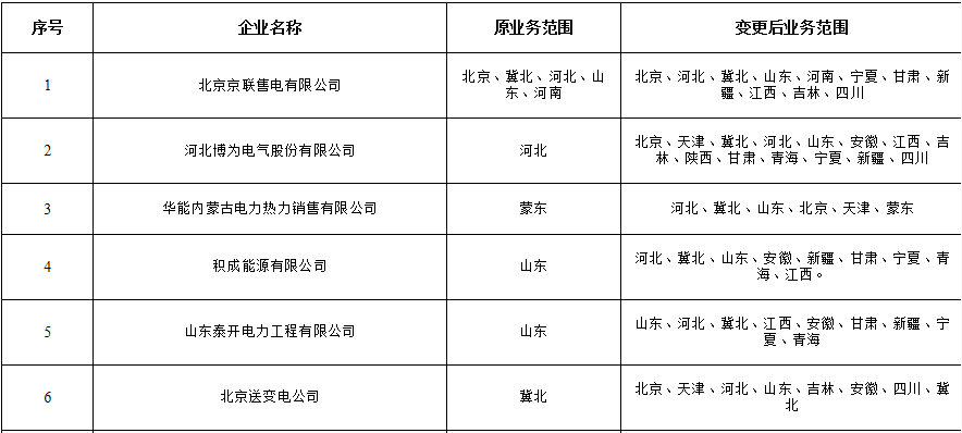 北京新公示11家業(yè)務(wù)范圍有變更售電公司