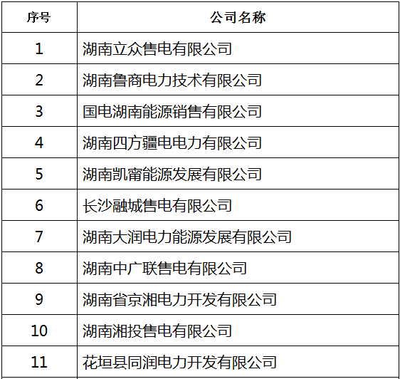 關(guān)于公示擬列入湖南省售電公司目錄第二批企業(yè)名單的通知
