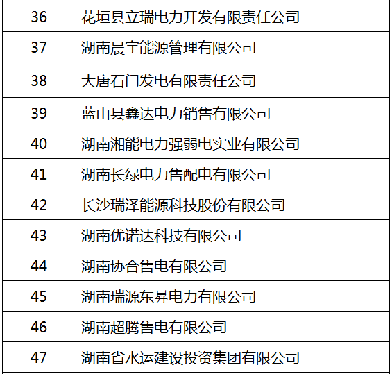 湖南省能源局11月14日發(fā)布了關(guān)于公示擬列入湖南省售電公司目錄第二批企業(yè)名單的通知,通知中對(duì)符合條件的57家企業(yè)列入湖南省售電公司目錄,公示期為2017年11月14日至12月14日。至此,詳情如下:
