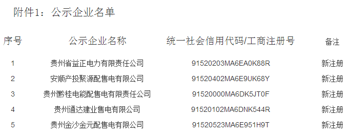 關于貴州省益正電力有限責任公司等5家企業(yè)注冊成為貴州省電力自主交易市場主體相關信息的公示