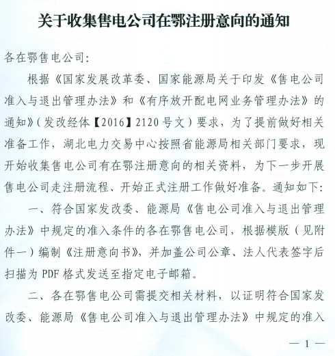 湖北電力交易中心發(fā)布《關(guān)于收集售電公司在鄂注冊(cè)意向的通知》