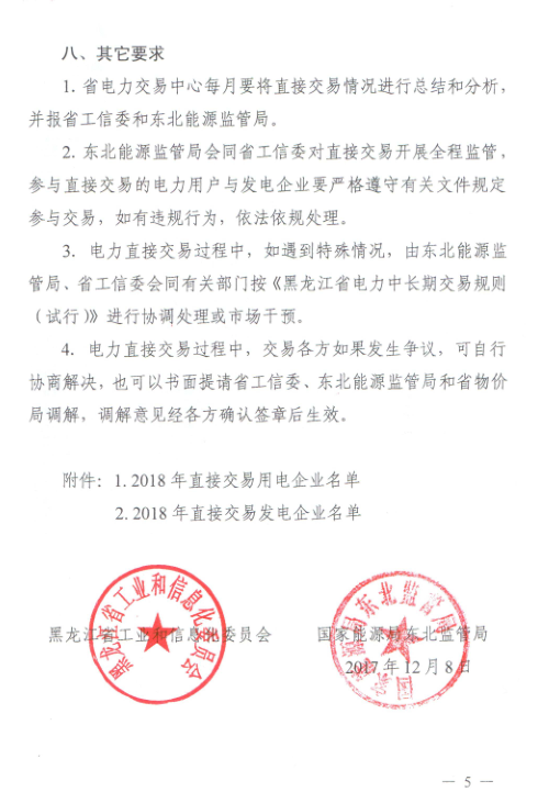 黑龍江2018年直接交易規(guī)模:120億千瓦時 (附發(fā)用電企業(yè)名單)