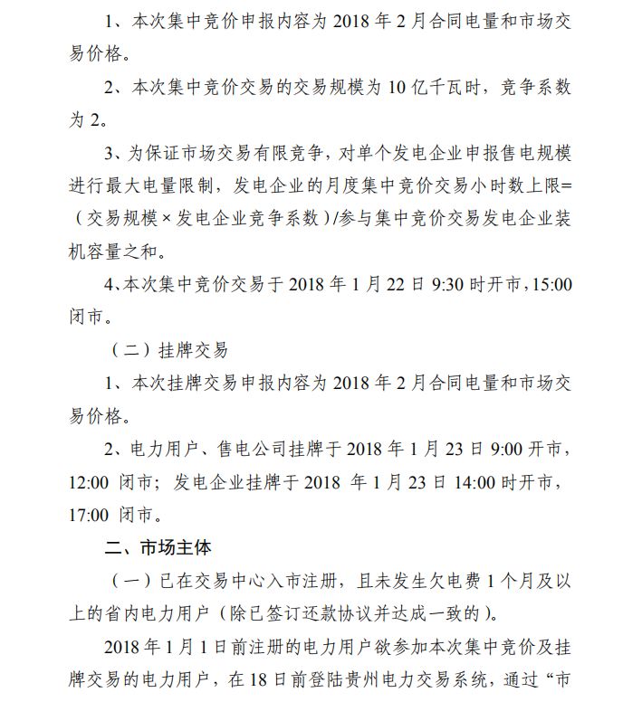 10億千瓦時(shí) 貴州《關(guān)于開展2018年2月份月度集中競價(jià)、掛牌交易的通知》