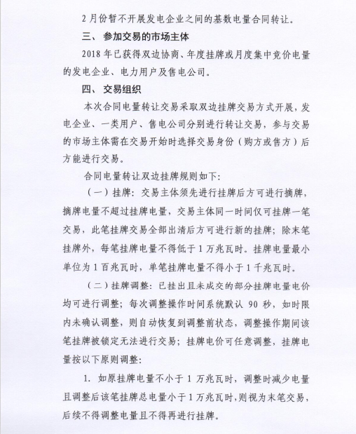 江蘇電力交易中心日前發(fā)布《江蘇2018年2月份合同轉(zhuǎn)讓交易公告》,公告指出:發(fā)電企業(yè)和電力用戶交易時間為2018年1月25日上午9:30至11:30。
