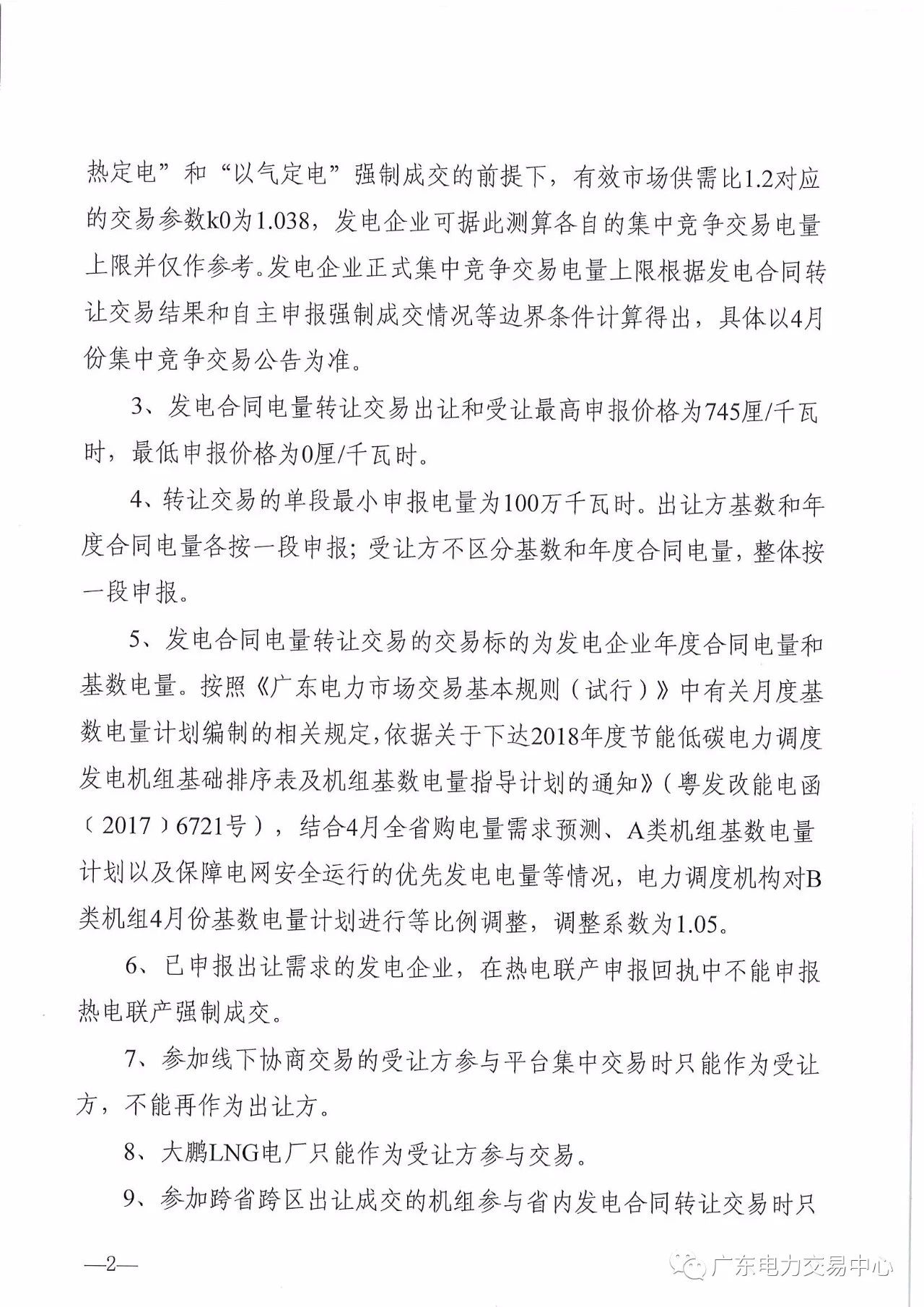 廣東電力交易中心日前發(fā)布了《關(guān)于開展2018年4月份發(fā)電合同電量轉(zhuǎn)讓交易的通知》,通知中稱,發(fā)電合同電量轉(zhuǎn)讓交易月份為2018年4月份,出讓
