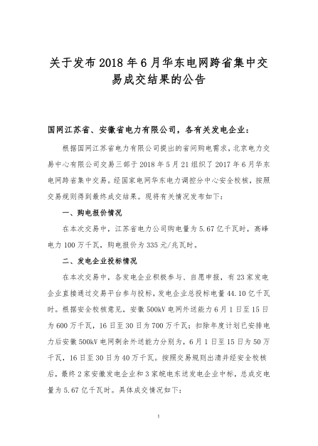 2018年6月華東電網(wǎng)跨省電能交易結(jié)果發(fā)布