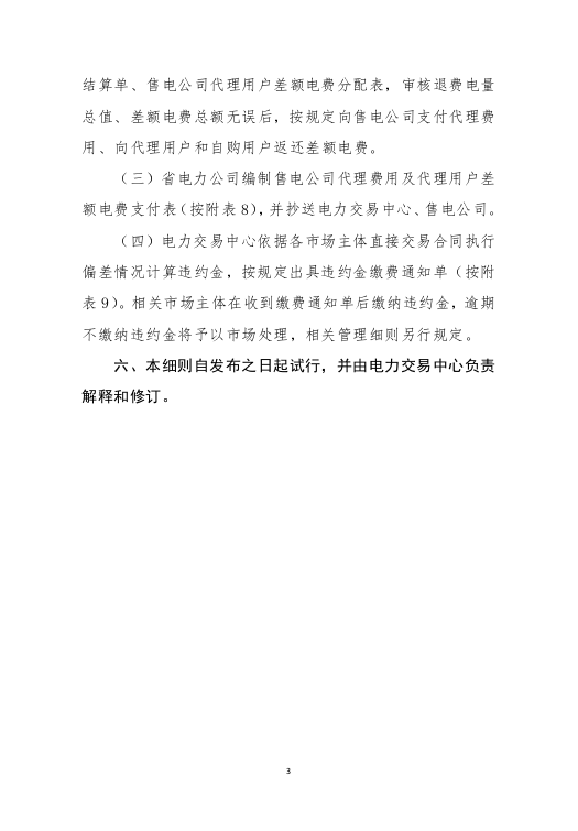 4.售電公司按規(guī)定編制差額電費分配表,在結(jié)算數(shù)據(jù)發(fā)布3個工作日內(nèi)提交省電力公司,抄送省電力交易中心。