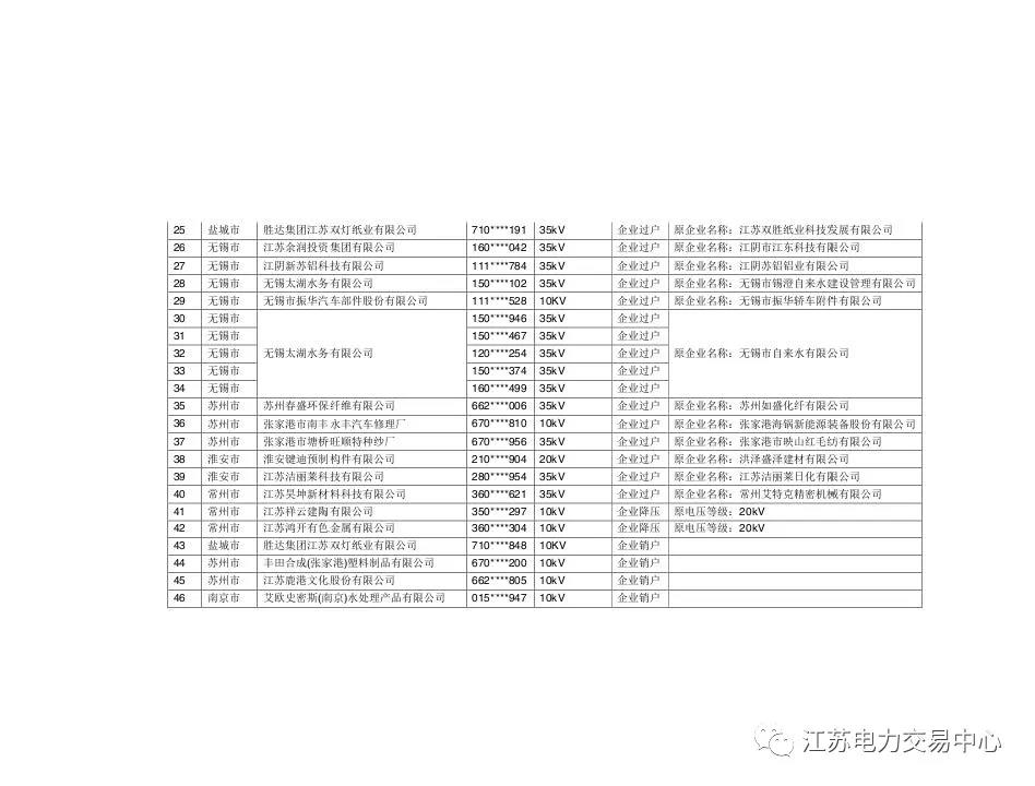 2018年江蘇電力市場準入用戶名單第六次更新的通知