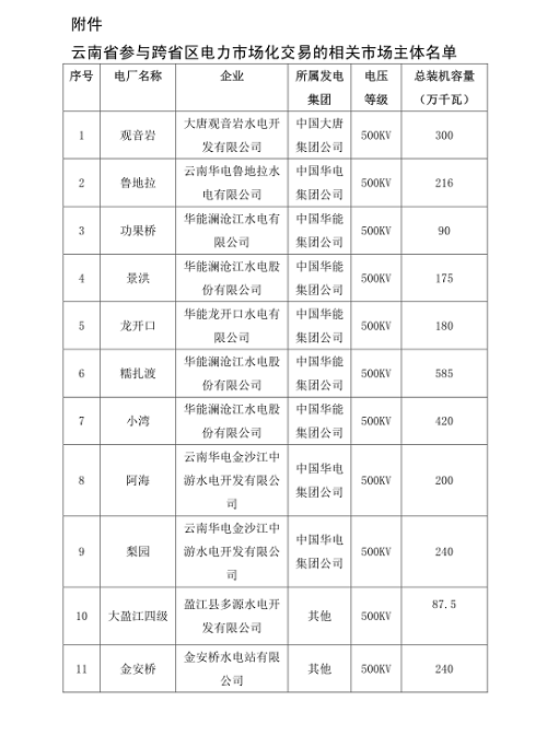 閱讀原文下載:云南省參與云貴水火置換交易相關(guān)市場(chǎng)主體名單
