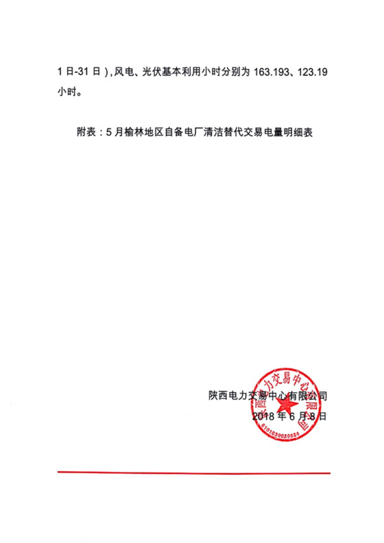 2018年4-6月榆林地區(qū)自備電廠清潔替代 交易執(zhí)行情況通報(bào)