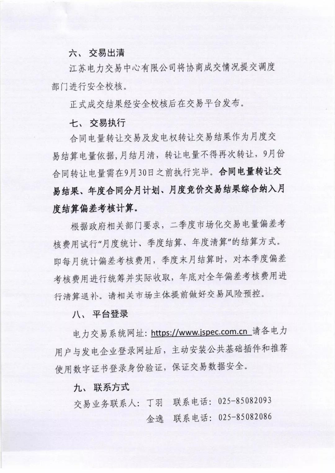 2018年9月份江蘇省發(fā)電企業(yè)合同電量轉讓及發(fā)電權交易公告
