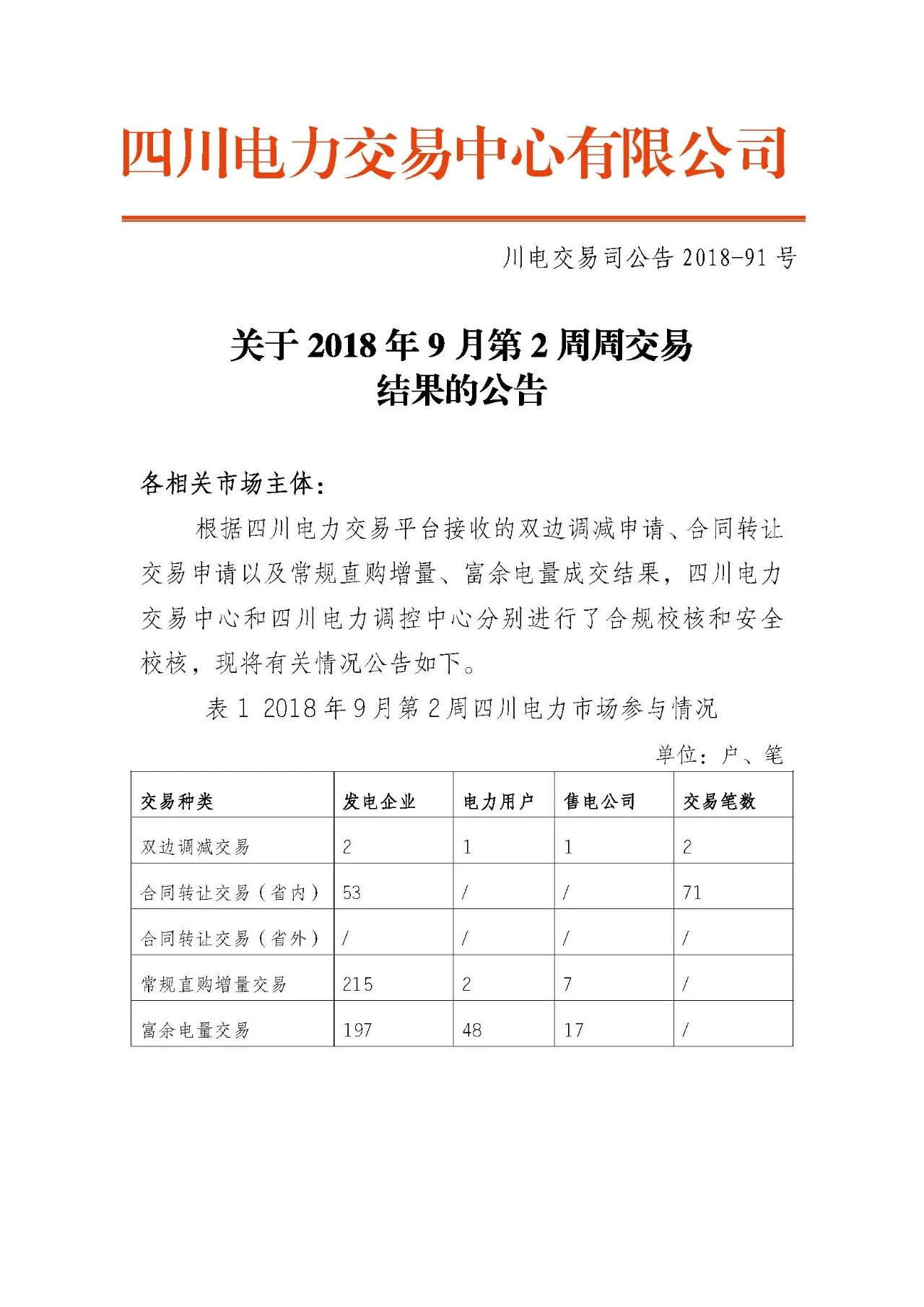 四川電力交易中心日前發(fā)布了《關(guān)于2018年9月第2周周交易結(jié)果的公告》,2家發(fā)電企業(yè)與1家電力用戶達(dá)成3040兆瓦時(shí)雙邊調(diào)減交易;省內(nèi)合同轉(zhuǎn)讓成交電量196583.733兆千瓦時(shí);常規(guī)直購電增量交易成交電量7106兆瓦時(shí),平均價(jià)格186.002元/兆瓦時(shí);富余電量交易成交電量192874兆瓦時(shí),平均價(jià)格81.253元/兆瓦時(shí)。詳情如下: