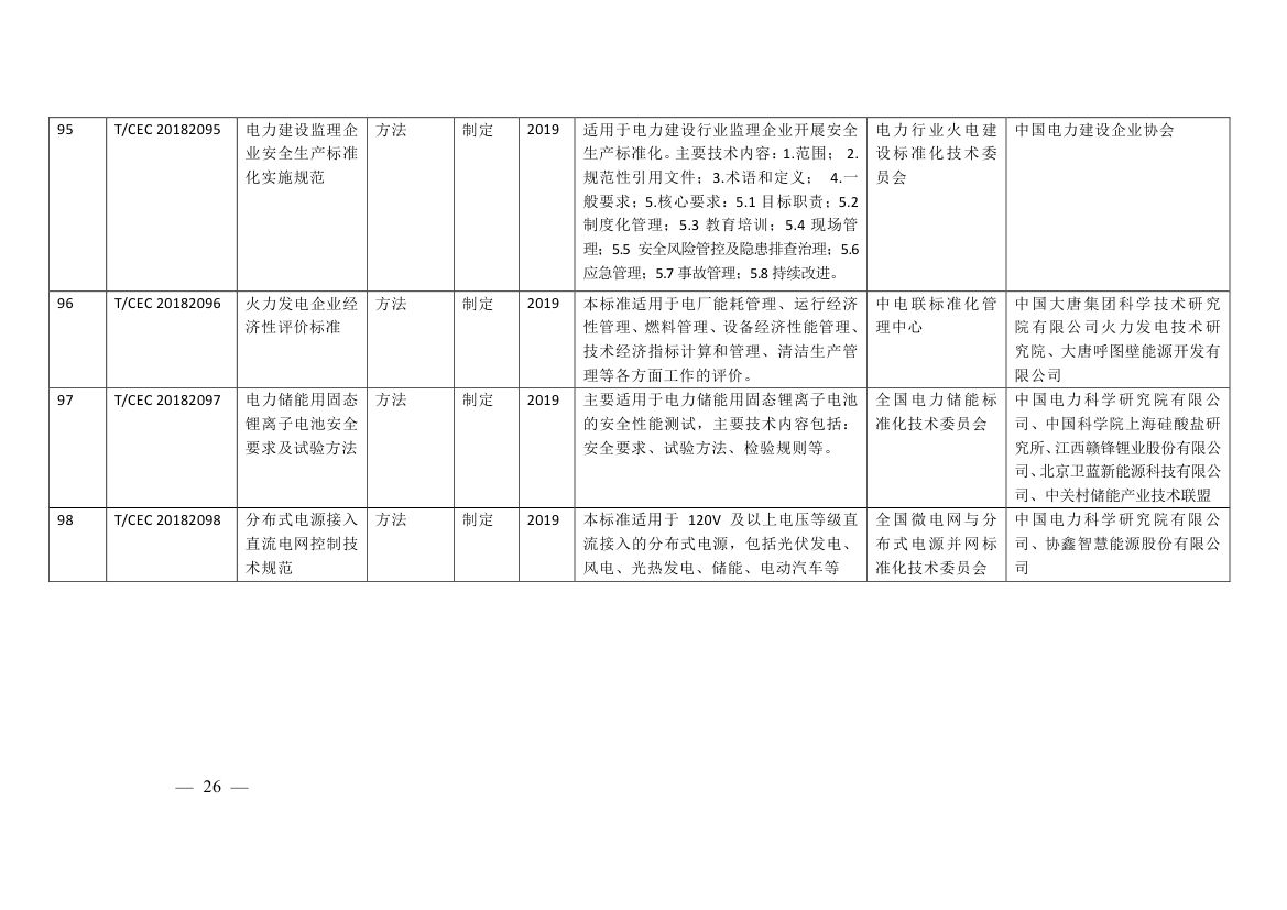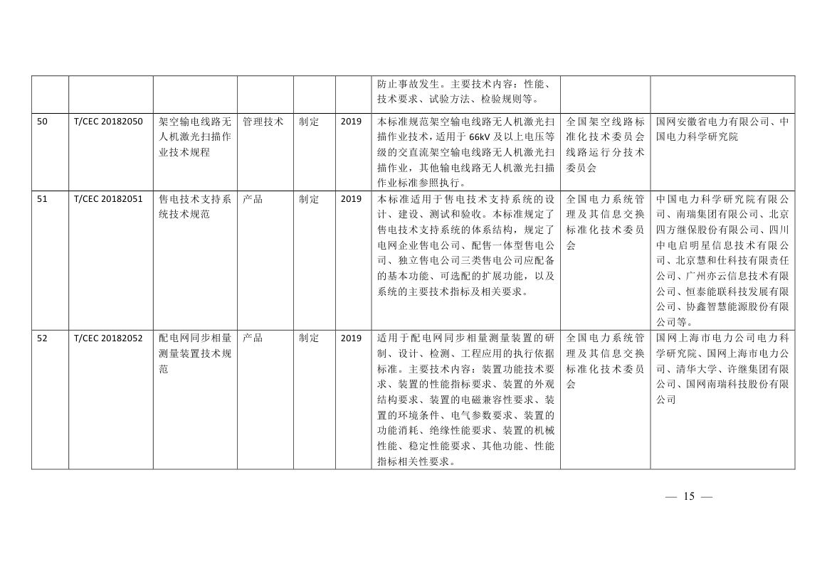 中電聯(lián)公布《關(guān)于印發(fā)2018年第二批中國(guó)電力企業(yè)聯(lián)合會(huì)標(biāo)準(zhǔn)制訂計(jì)劃的通知》,其中涉及輸變電工程質(zhì)量評(píng)價(jià)標(biāo)準(zhǔn)、特高壓及跨區(qū)電網(wǎng)智能運(yùn)檢管控系統(tǒng)功能規(guī)范、開關(guān)設(shè)備分合閘線圈電流波形帶電檢測(cè)儀器技術(shù)規(guī)范、高壓電纜在線監(jiān)測(cè)裝置運(yùn)行維護(hù)導(dǎo)則、柔性直流輸電工程換流閥子模塊中控板通用技術(shù)規(guī)范、配網(wǎng)帶電作業(yè)機(jī) 器人通用技術(shù)條件、分布式電源接入直流電網(wǎng)控制技術(shù)規(guī)范等111項(xiàng)電力行業(yè)標(biāo)準(zhǔn),具體內(nèi)容如下: