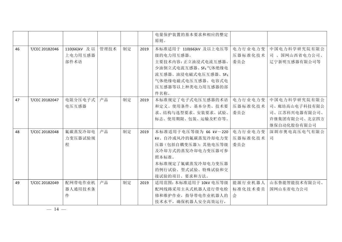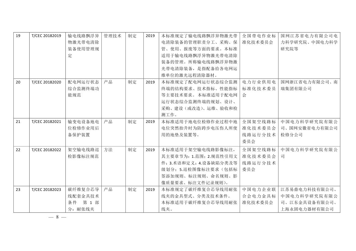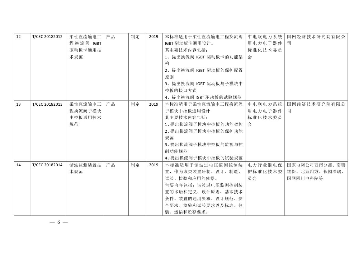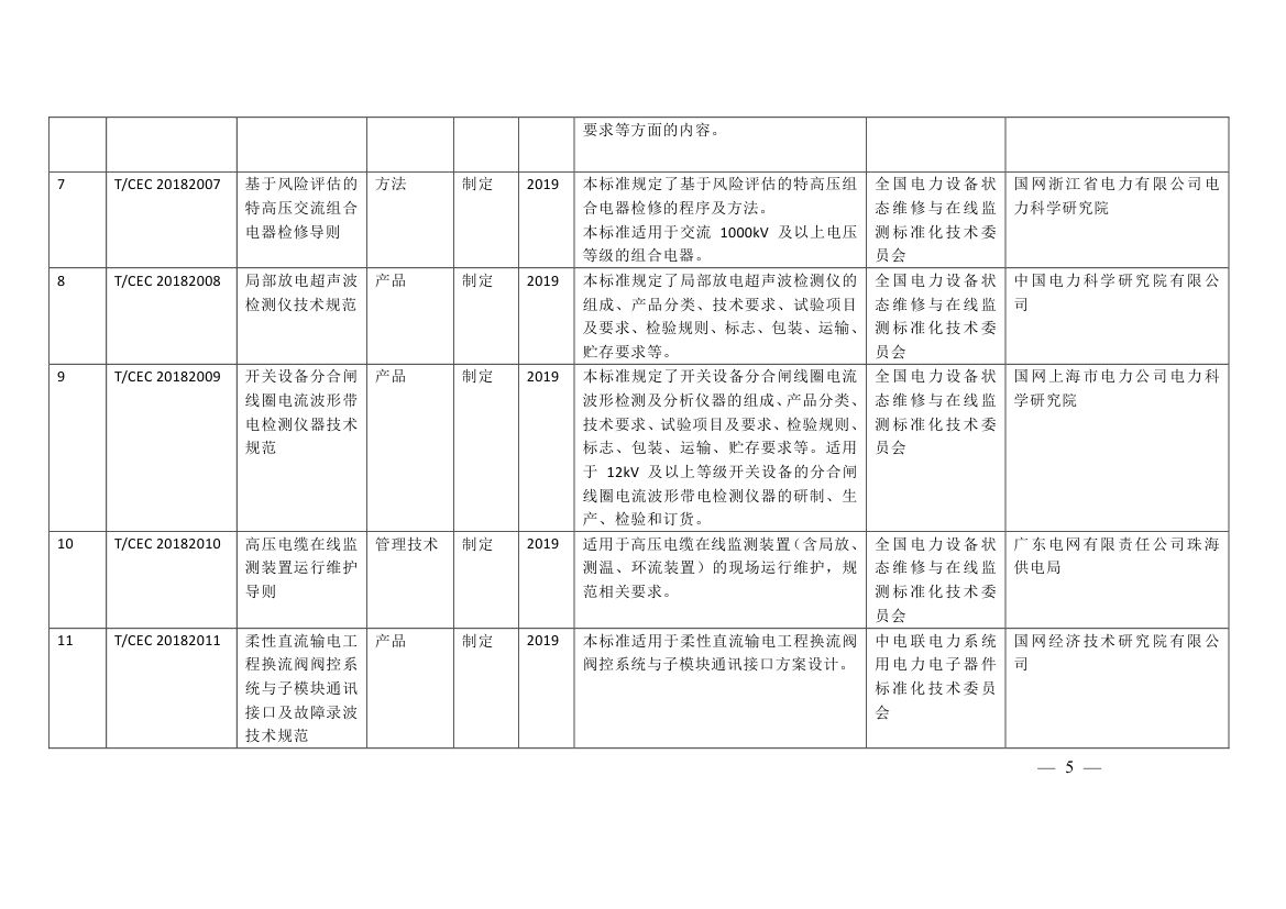 涉及輸變電工程質(zhì)量評(píng)價(jià)標(biāo)準(zhǔn)、特高壓及跨區(qū)電網(wǎng)智能運(yùn)檢管控系統(tǒng)功能規(guī)范、開關(guān)設(shè)備分合閘線圈電流波形帶電檢測(cè)儀器技術(shù)規(guī)范、高壓電纜在線監(jiān)測(cè)裝置運(yùn)行維護(hù)導(dǎo)則、柔性直流輸電工程換流閥子模塊中控板通用技術(shù)規(guī)范、配網(wǎng)帶電作業(yè)機(jī) 器人通用技術(shù)條件、分布式電源接入直流電網(wǎng)